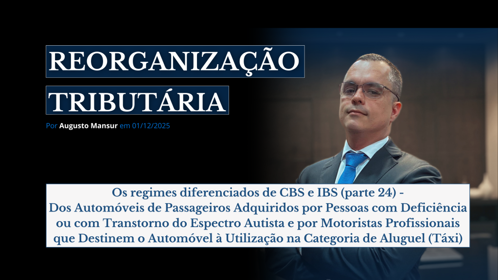 Os regimes diferenciados de CBS e IBS (parte 24) – Dos Automóveis de Passageiros Adquiridos por Pessoas com Deficiência ou com Transtorno do Espectro Autista e por Motoristas Profissionais que Destinem o Automóvel à Utilização na Categoria de Aluguel (Táxi)