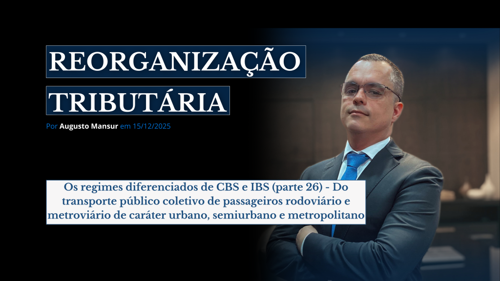 Conforme prescreve o art. 157, da Lei Complementar n.º 214/2025, “fica isento do IBS e da CBS o fornecimento de serviços de transporte público coletivo de passageiros rodoviário e metroviário de caráter urbano, semiurbano e metropolitano, sob regime de autorização, permissão ou concessão pública”. O primeiro ponto de atenção sobre o “regime diferenciado” para os […]