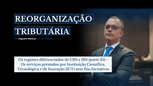 Na estruturação organizacional dos “regimes diferenciados” de CBS e IBS a Lei Complementar n.º 214/2025 cria uma “parte geral” e uma série de “disposições específicas” para determinadas atividades econômicas desempenhadas pelos contribuintes.